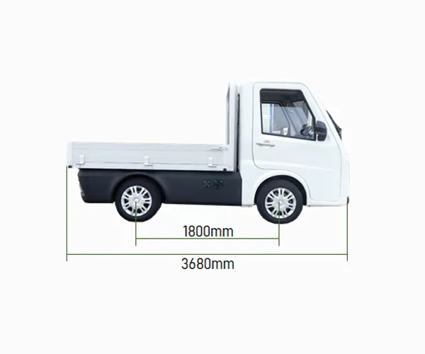 ENERGY-SAVING eco-friendly pure electric transport minitruck, EFFICIENT POWER; instant torque from electric motors; quick acceleration, MINIMAL NOISE; smooth drive, HIGH FLEXIBILITY; versatile/multipurpose- large 12 inch SCREEN DISPLAY, low or no ROAD TAX, CHARGE AT HOME (220 Volt; household socket) or Car Charging Station (6.5-10 h), allowed for ALL TYPES OF ROADS, ABS breaking system & EPS (smooth) steering system, SMALL TURNING RADIUS, THREE LAYER PAINTING, SPACIOUS CABIN DESIGN, REVERSE CAMERA, ELECTRIC ADJUST REAR VIEW SIDE MIRROR, DIGITAL REAR VIEW MIRROR, ELECTRIC WINDOWS, BRAKE (energy) RECOVERY system, CARGOBED (Flatbed): alumimum, lightweight/strength, corrosion resistance, LOAD CAPACITY: 650 KG, SPEED 80 km/h, RANGE 170/200 km/20.6 kwH Battery (optional: 27.2 kwH Battery –> 200/250 km), 2-PERSONS
